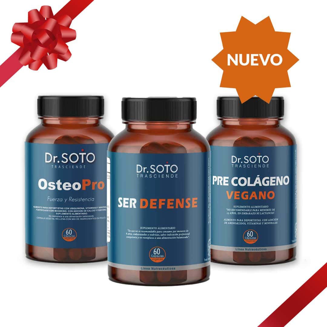 Combina Osteo Pro (salud ósea y articular), Precolágeno Vegano (piel y elasticidad) y Ser Defense (sistema inmunológico) para acompañar el bienestar estructural y la belleza desde el interior.